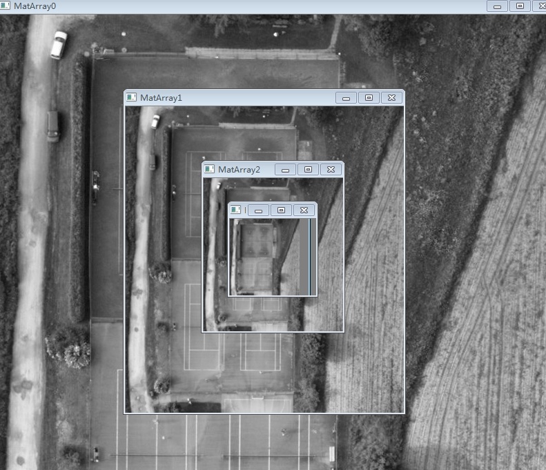 图像金字塔MatArray0为原始图像,MatArray1-3分别为三层金字塔。MatArray的大小为