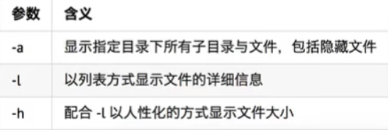 ls -l -h 和 ls -lh 作用一样 用列表方式显示文件的详细信息,文件大小的展示更人性化