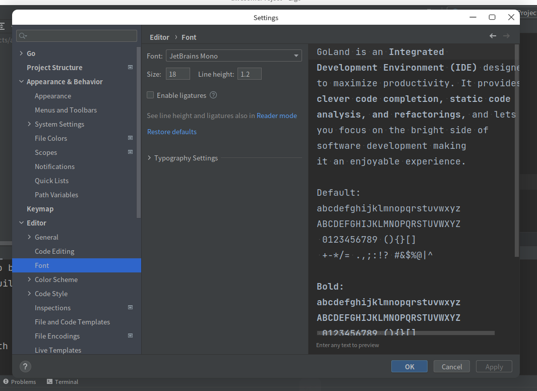 1 简单字体配置(ctrl + alt + s进入setttings界面)