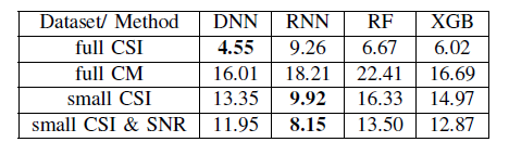 在Full CSI 、small CSI, Full CM 、small CM的比较发现的使用整个数据得到的错误率较低。