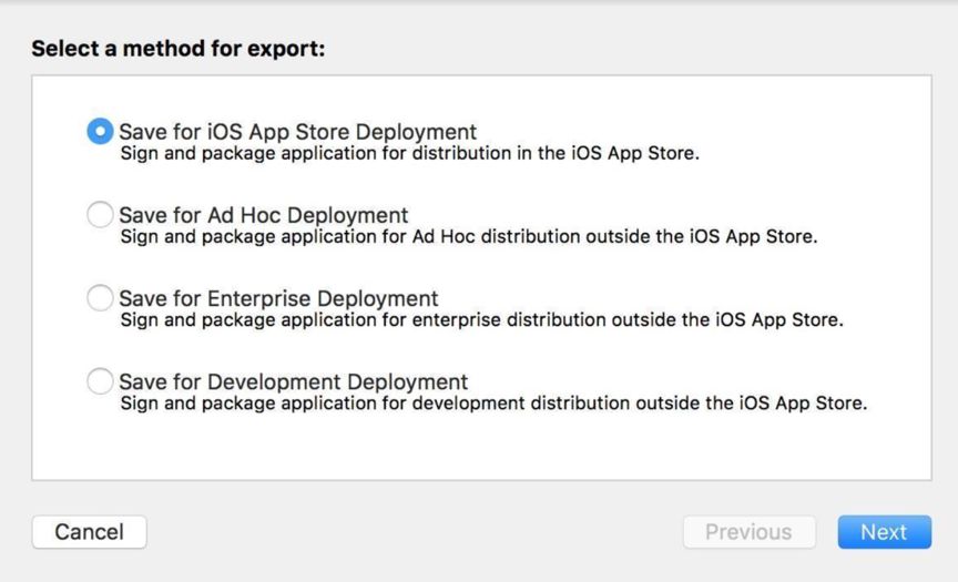 iOS APP打包最常用的是Xcode开发工具,在使用Xcode打包时,要想打不同类型的测试安装包,需要在archive阶段导包时选择不同的打包类型,下面是4种选项导出的包的含义: