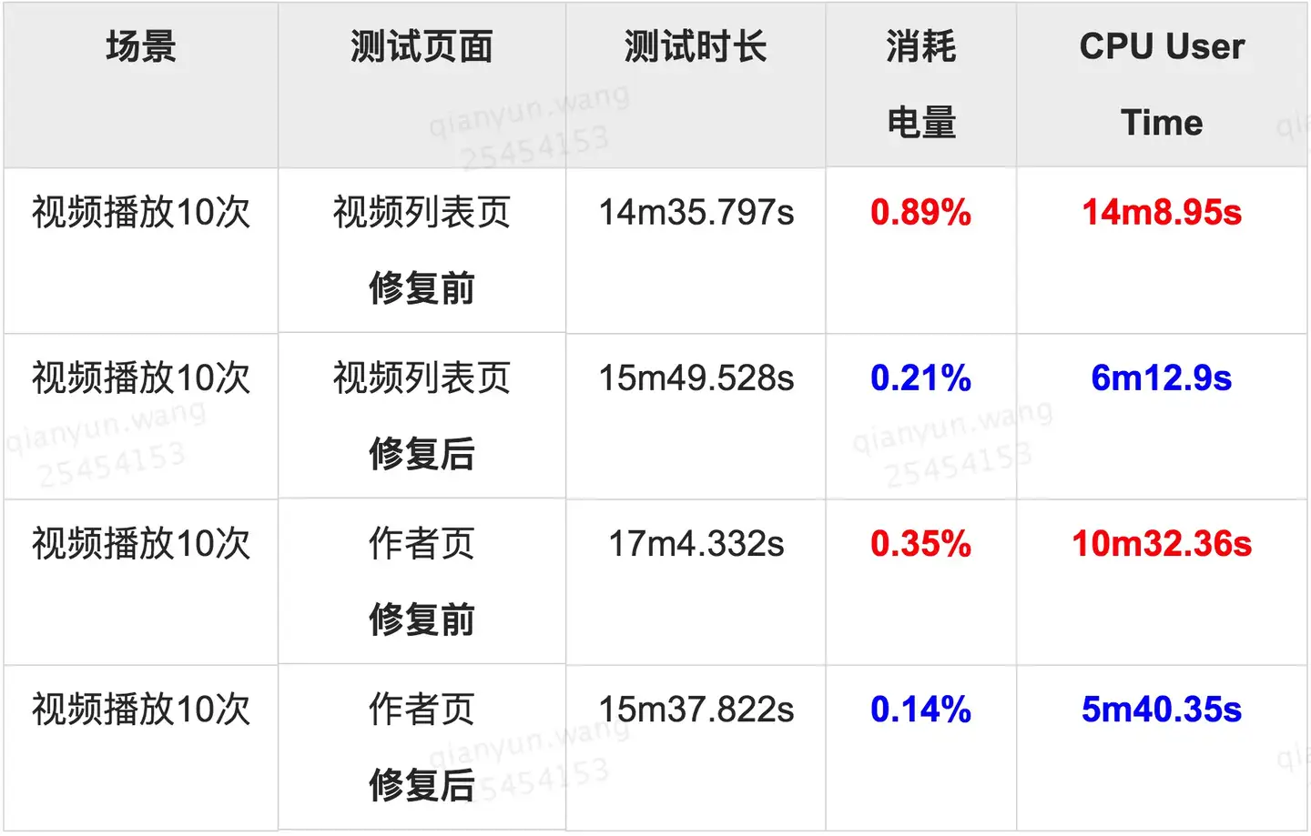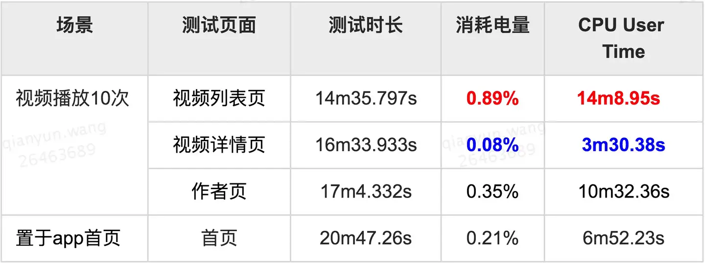 从上面的测试结果,可以看到,视频列表页和作者页,耗电情况得到明显的优化。