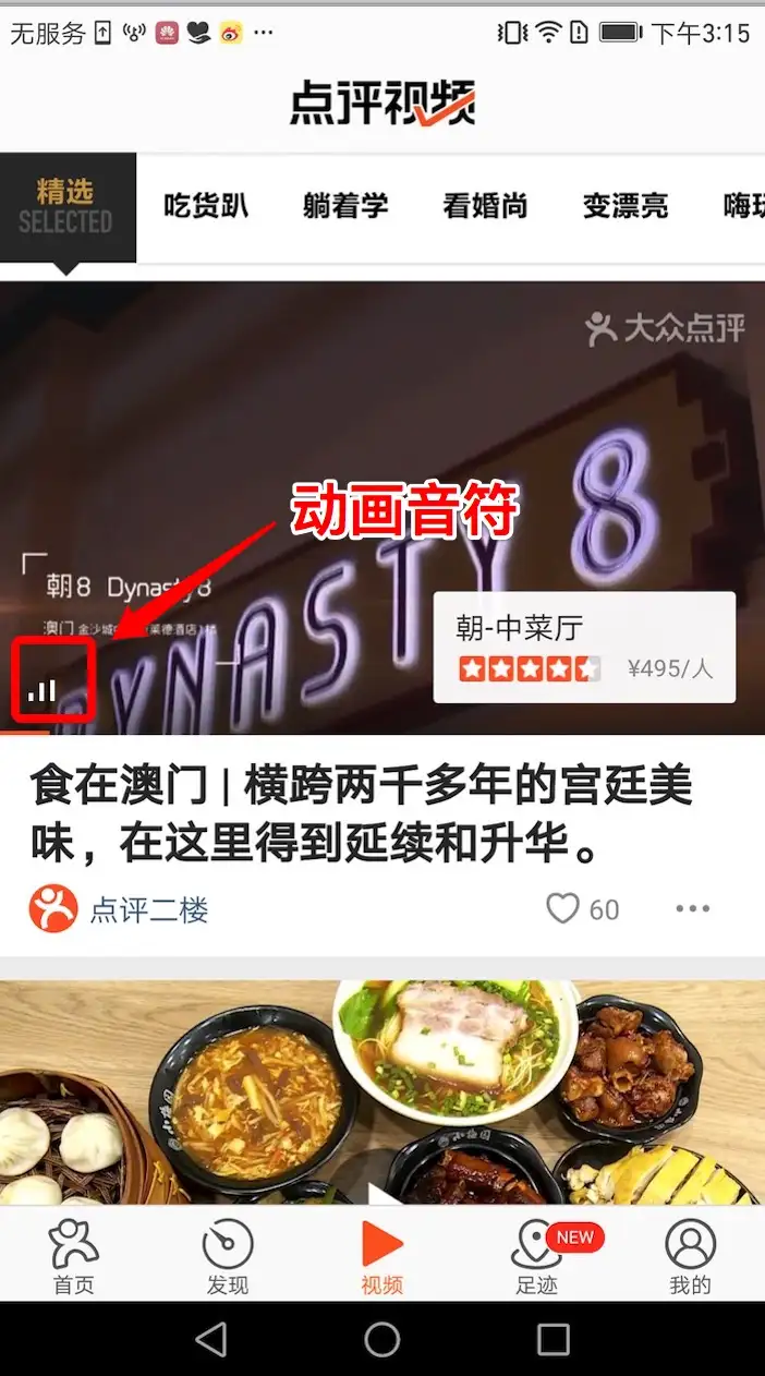 视频列表页消耗电量过高,从测试数据可以很明显的看出来,视频列表页CPU占用时间高很多。从播放器布局来看,列表页和作者页比视频详情页只是多出了动画音符。如下图,红框中圈出的视频左下角的音符。