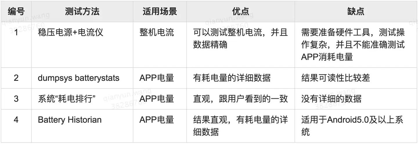 了解原理对于平常在App耗电量的测试有很大的帮助。因为获取到手机power_profile.xml文件,就可以清楚的知道这个手机上,哪些模块会耗电,以及哪些模块在什么状态下耗电量最高。那么测试的时候,应该重点关注调用了这些模块的地方。比如App在哪些地方使用WiFi、蓝牙、GPS等等。