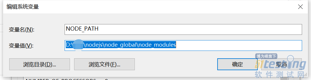 新增系统变量NODE_PATH,变量值为D:nodejs\node_global\node_modules(我安装在了D盘)。