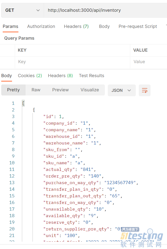 查询所有数据:http://localhost:3000/api/表名。