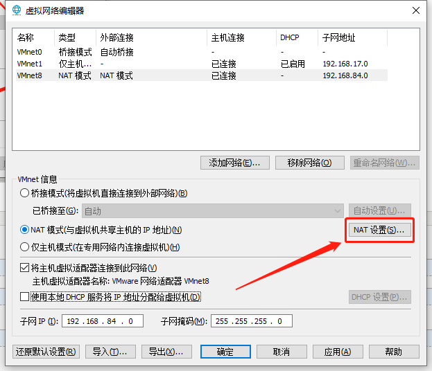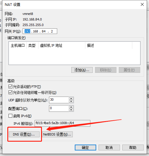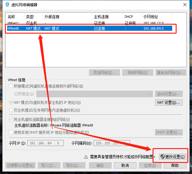 点击VMnet8->更改设置