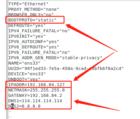 把“BOOTPROTO”改成静态“static”(原来是动态“dhcp”)