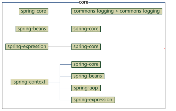 核心容器由spring-core,spring-beans,spring-context,spring-context-support和spring-expression(SpEL,Spring表达式语言,Spring Expression Language)等模块组成,它们的细节如下: