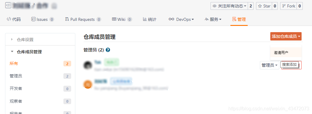 申请完毕之后 ,添加项目到远程仓库。 设为 公开的。 并添加自己的伙伴的