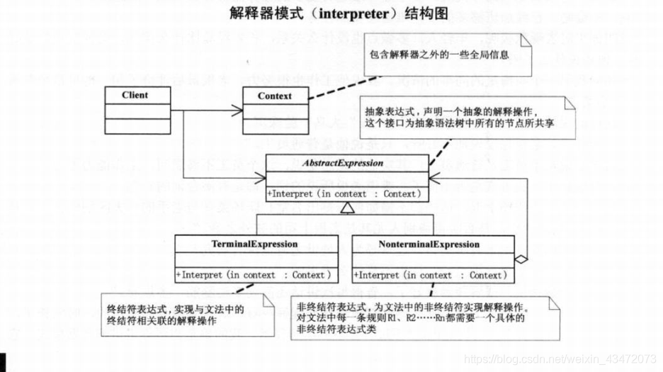 给定一个语言,定义他的文法的一种表示,并定义一个解释器,这个解释器使用该表示来解释语言中的句子。
