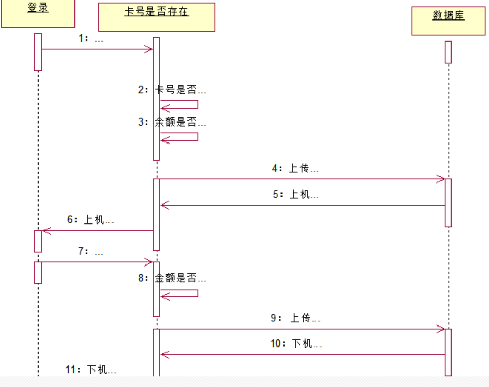 类元角色用生命线表示。当对象存在时,角色用一条虚线表示,当对象的过程处于激活状态时,生命线时一个双道线。