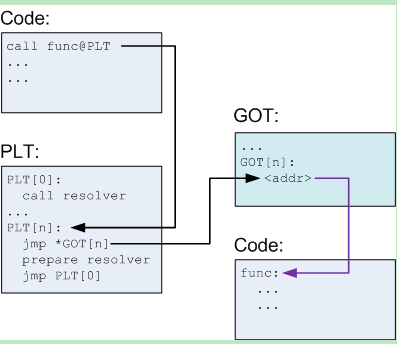 之后再调用func这个函数,就会通过PLT调到GOT直接找到这个函数的地址,直接调用了。