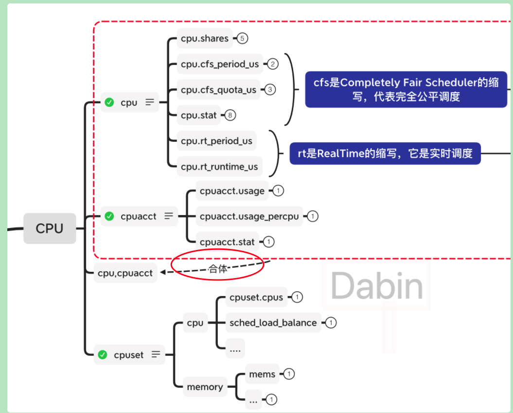 - cpuacct 提供 cgroup CPU 使用时长的统计信息
