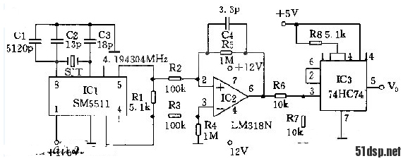 在数字电路中常常需要用精确的秒脉冲信号来对检测的信号进行采样取值。实际中多采用高频振荡器产生高频信号,然后经多级分频电路得到。这里介绍一种利用高频石英钟集成电路SM5511产生精确的秒脉冲的电路。