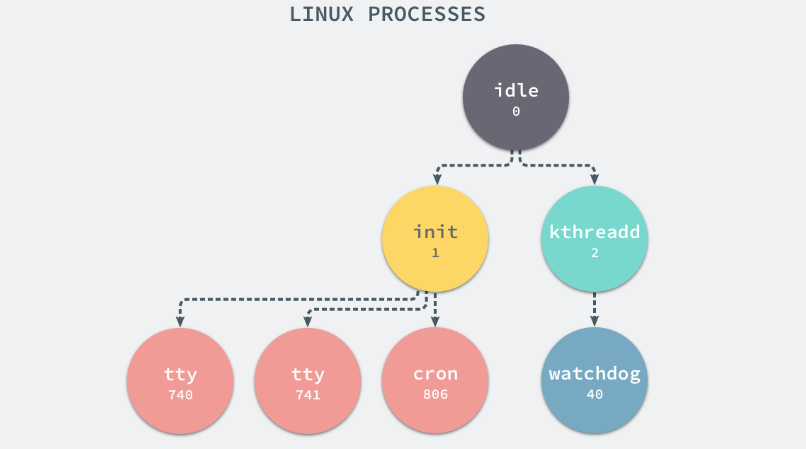 在当前的宿主机器上,可能就存在由上述的不同进程构成的进程树: