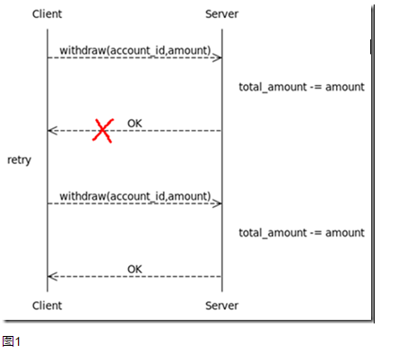 为什么需要幂等性呢?我们先从一个例子说起,假设有一个从账户取钱的远程API(可以是HTTP的,也可以不是),我们暂时用类函数的方式记为: