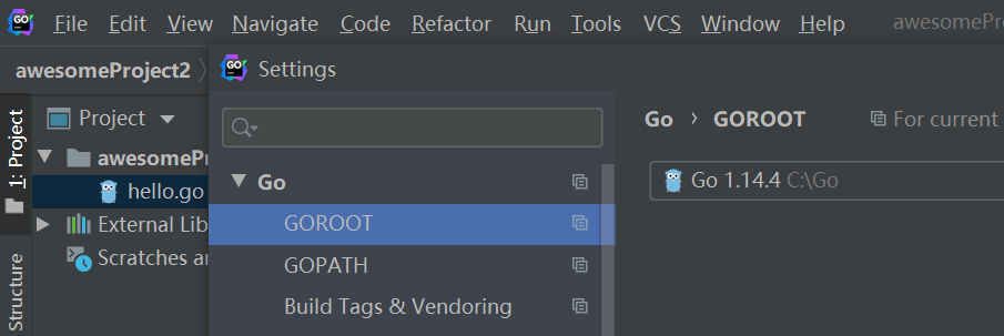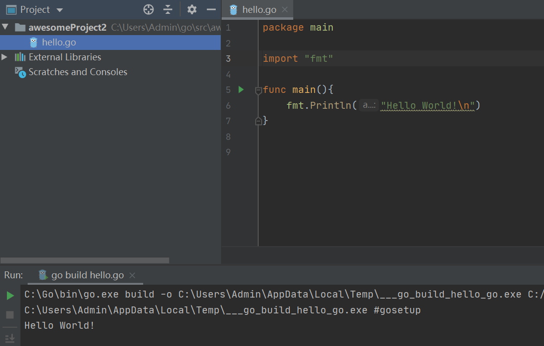 - 然后新建一个项目,编写一个hello.go看是否能运行成功就行