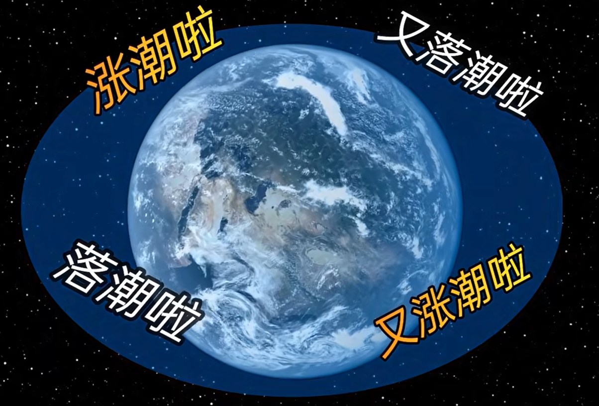 在一个潮汐周期(约24小时50分钟,天文学上称一个太阴日,即月球连续两次经过上中天所需的时间)中,各地潮水涨落的次数、时刻、持续时间也均不相同