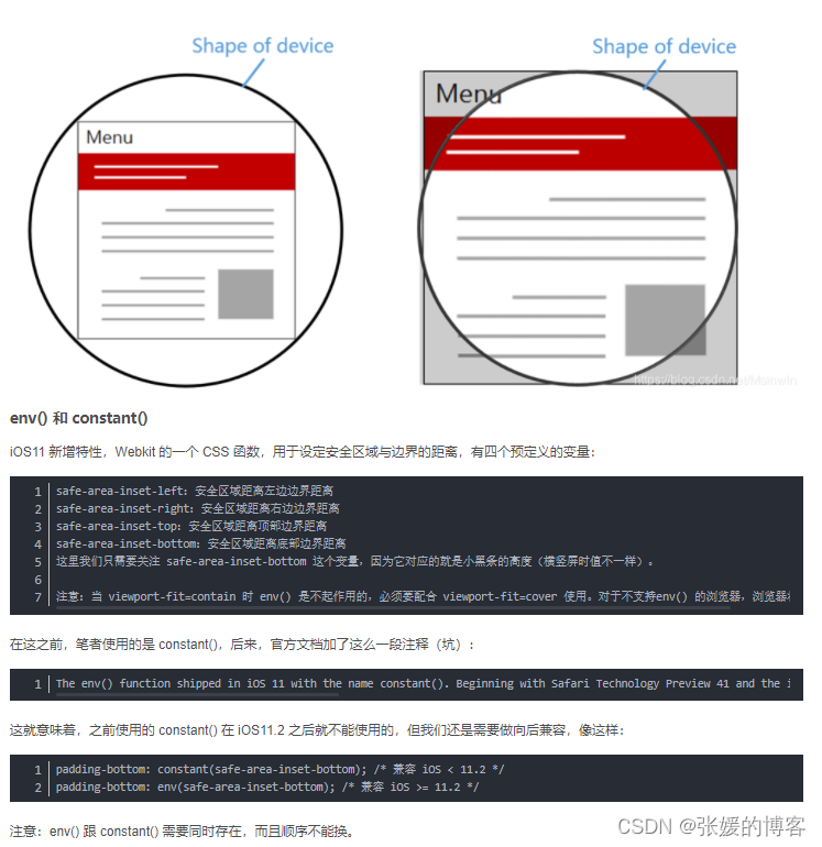 前面也有提到过,只有设置了 viewport-fit=cover,才能使用 env()。