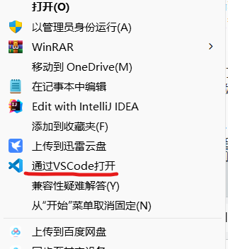 - 因为我这里下载的是压缩包,不用安装直接用解压后文件夹中的Code.exe,导致对文件或文件夹右键时没有用vscode打开的选项,接下来进行一些操作,来添加这个功能。