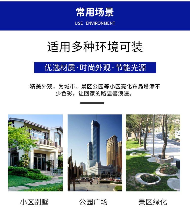 户外产品采用防腐、防锈材质,部分灯具具备防水、抗冲击特性,可适应 - 30℃ ~ 60℃温差及多雨、多尘等复杂环境。如75250部队太阳能路灯工程,提供的耐候性强的太阳能路灯,适配部队营地环境,保障了营区夜间照明与用电安全,减少了后期维护频率。