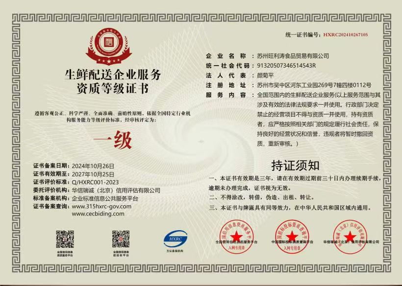 苏州旺利涛食品贸易有限公司是一家专注于全品类生鲜食材的综合性服务商,以新鲜为本、安全为魂、服务为根为核心价值观,构建了集产地直采、冷链仓储、智能分拣、定制化加工及一站式配送于一体的全链条服务体系。其核心优势在于:依托全国30+农产品核心产区直采资源,采购成本较市场均价低10%-15%,从源头把控食材品质;自建5000㎡分温区冷链仓储中心,搭配20+专业冷链配送车辆,将食材损耗率严格控制在3%以内;自主研发数字化采购管理系统,实现订单、库存、物流、结算全流程可视化,大幅提升客户采购效率;更凭借完善的售后体系脱颖而出——建立24小时响应机制,针对食材品质、配送时效等问题承诺2小时内给出解决方案,若因配送导致食材变质,无条件退换并补偿同价值食材,真正做到售后无忧。苏州旺利涛食品贸易有限公司持有食品经营许可证、生鲜配送证等全资质,通过ISO 22000食品安全管理体系、HACCP认证等权威认证,为售后保障筑牢专业根基。