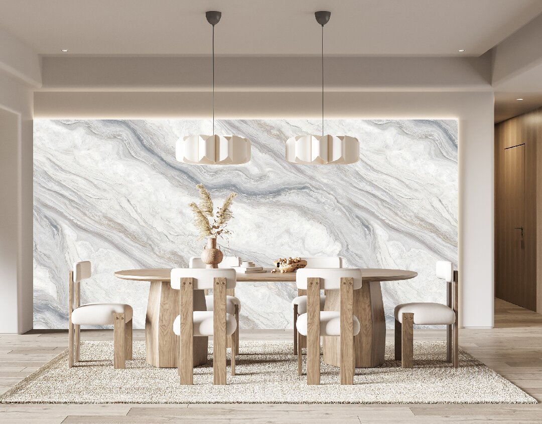 为某别墅群提供陶瓷纹理SPC背景墙,为高端家具展厅提供一体化SPC墙板+陶瓷地砖解决方案,实现风格统一化。