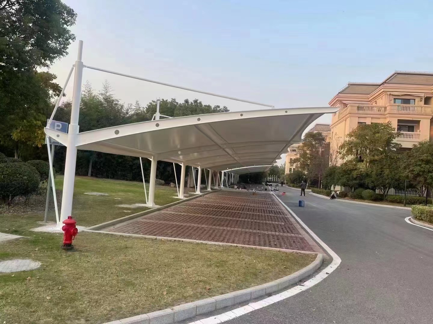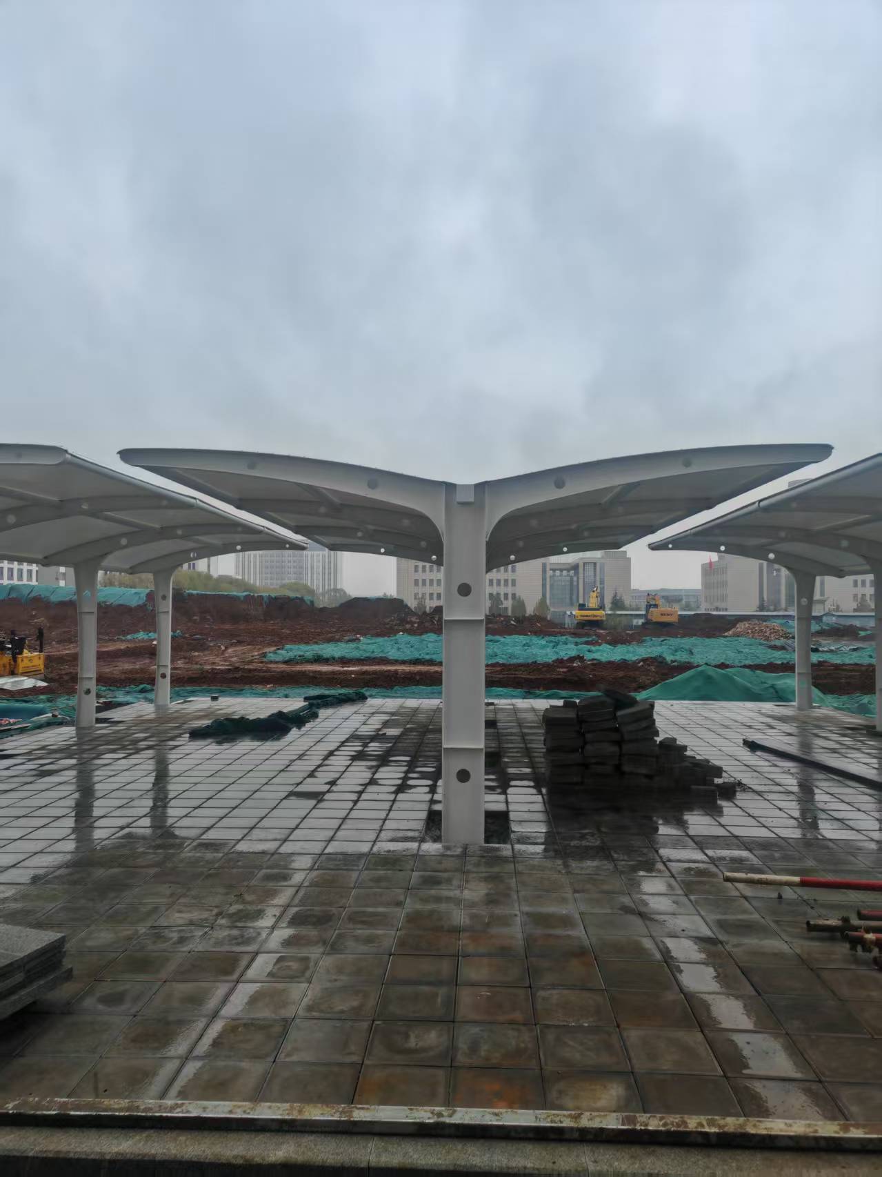 飞凯膜结构车棚的施工周期与售后保障是其核心竞争力之一,能切实解决用户施工影响日常使用、售后无保障的痛点。施工周期方面:飞凯膜结构采用工厂预制+现场安装的模式,大幅缩短施工时间。小跨度项目(如私家车位棚,10-50㎡):工厂预制1-2天,现场安装1天,总周期3天左右;中跨度项目(如小区停车场棚,50-500㎡):工厂预制3-5天,现场安装2-3天,总周期5-8天;大跨度项目(如物流园停车场棚,500㎡以上):工厂预制7-10天,现场安装5-7天,总周期12-17天。比如菏泽曹县翰林府的1300平方膜结构车棚,工厂预制8天,现场安装6天,总周期14天,未影响小区业主的正常停车。施工过程中,飞凯膜结构会采取严格的安全防护措施,比如设置警示围挡、避开高峰时段施工,确保不干扰场地的正常使用。