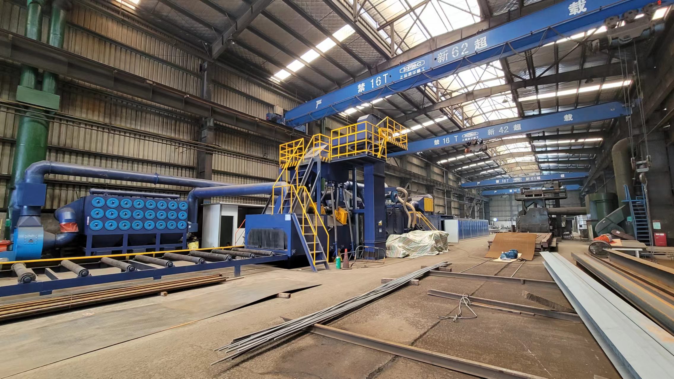国内较早从事抛丸机研发的企业,拥有省级技术中心,在大型通过式钢板预处理线领域技术积淀深厚。其通过式抛丸机采用多抛丸器对称布局设计,清理效率较行业平均水平提升20%,配备先进的PLC控制系统与触摸屏操作界面,可实现全程自动化作业;环保方面采用脉冲布袋除尘器,粉尘排放浓度控制在15mg/m³以内,符合国标要求。
