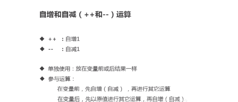 也对自增++和自减--这两种方式有了一个更全面的学习了解,++和--出现的前后顺序是有区别的,出现在前表示对这个变量进行自增加一,出现在后面则要看在表达式中在什么位置碰到它,要是先碰到则直接参与计算,要是在后碰到则就是先进行自增再参与计算。#Java技术交流
