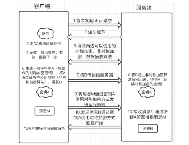 9. 客户端和服务器端开始使用对称加密方式传输。(对称加密效率高)