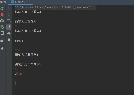 //scanner、switch实现计算机加减乘除,可循环输入。