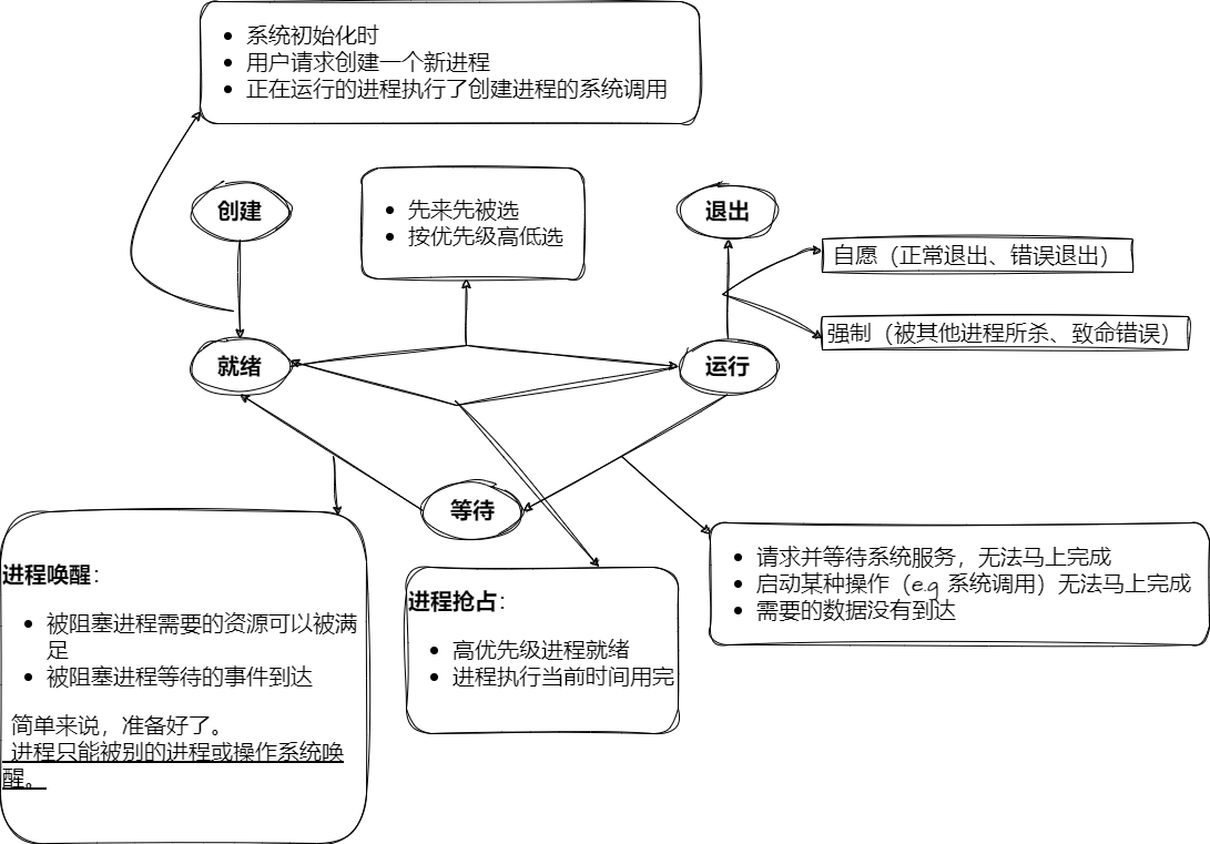 - 制约性(因访问共享资源/资源或进程间同步而产生制约)