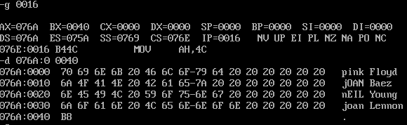 assume cs:code, ds:data data segment db 'Pink Floyd ' db 'JOAN Baez ' db 'NEIL Young ' db 'Joan Lennon ' data ends code segment start: mov ax,data mov ds,ax mov cx,4 mov bx,0 s: mov al,[bx] or al,20H mov [bx],al add bx,16 loop s mov ah, 4ch int 21h code ends end start