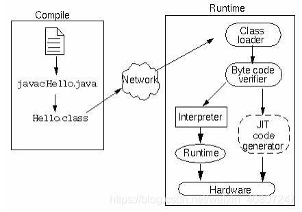 2、运行期:Java类加载器将 .class 字节码文件加载到内存,在 JVM 中进行解释并生成可执行代码。