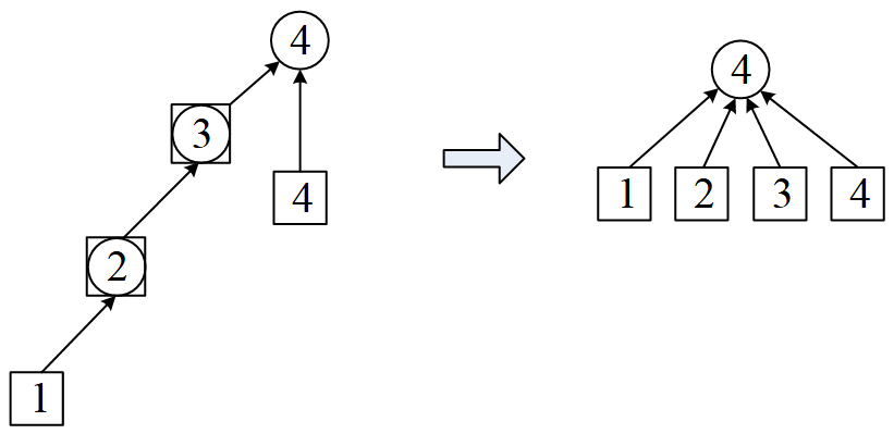 复杂度:上述程序,查找find_set()、合并merge_set()的搜索深度是树的长度,复杂度都是O(n),性能比较差。下面介绍合并和查询的优化方法,优化之后,查找和合并的复杂度都小于O(logn)。