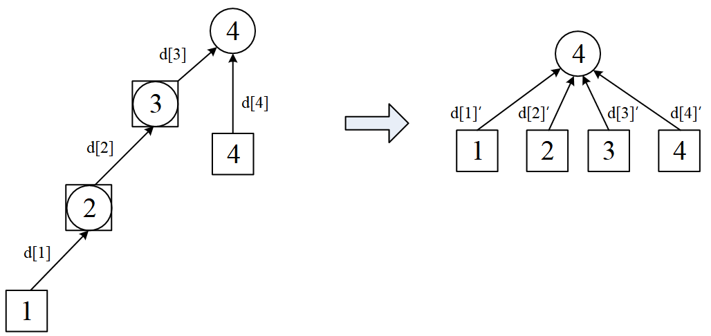 (ii)合并时,如何更新权值。本题的权值更新是取模操作,内容见下面的代码。