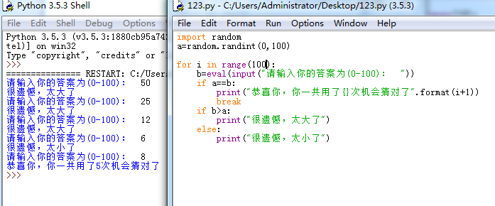 3、猜数字游戏续。改编第3题中的猜数字游戏,让计算机能够随机产生一个预设数字,范围在0-100之间,其他游戏规则不变。