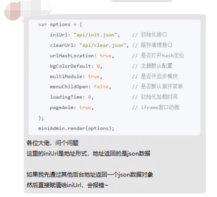 上面这个问题是因为LayuiMini的源文件因为需要展示效果,所以目录是从init.json文件获取的,并不是从后台动态获取的,所以就算你改成后台接口,也没有用,而且会报错。
