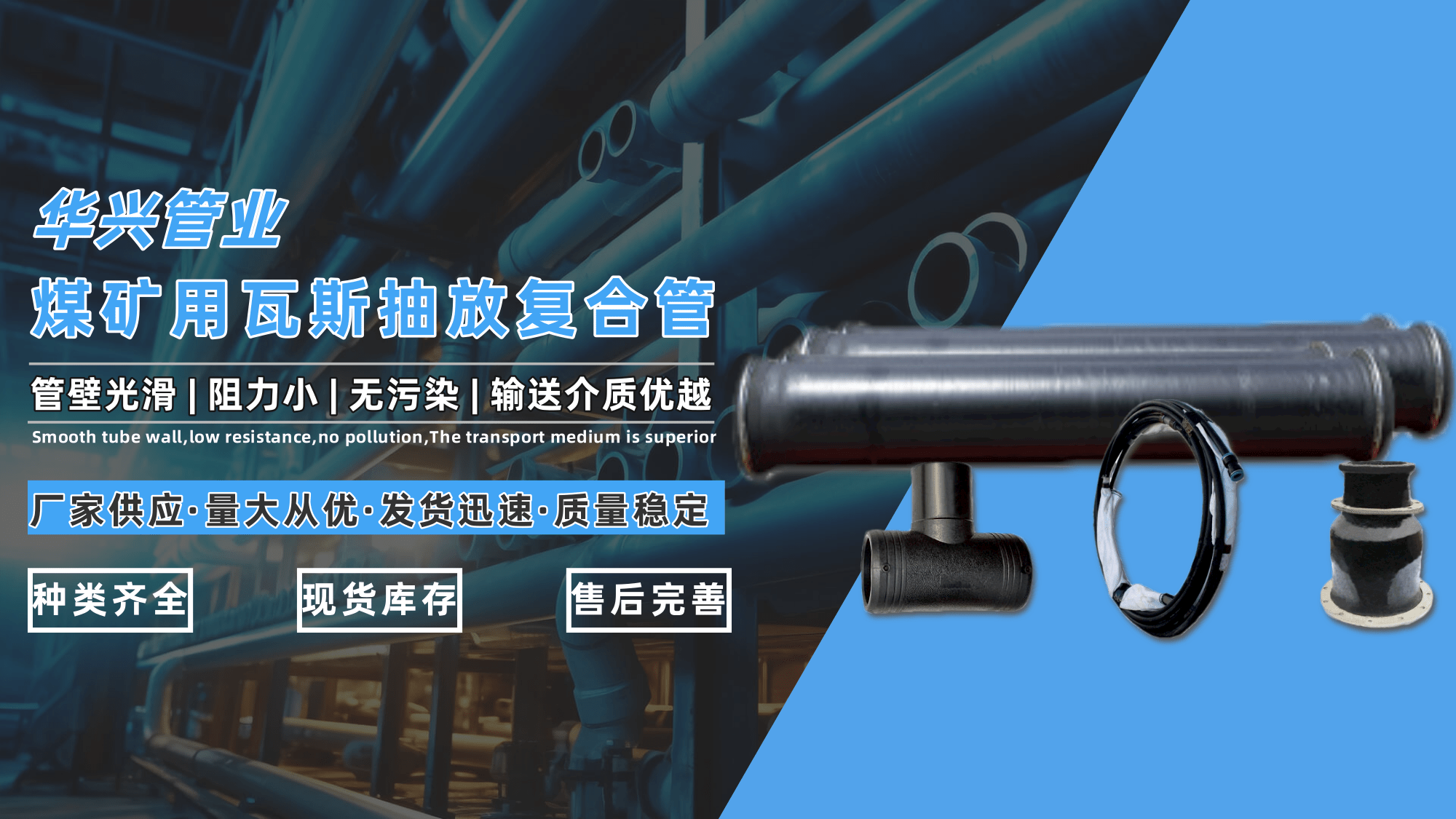 公司定位:贵州本土深耕矿用管道领域20年的高新技术企业,专注煤矿用聚酯纤维复合瓦斯抽放管、钢骨架纤维增强树脂管等产品的研发、生产与全流程服务,以安全耐用、技术创新为核心,为贵州、云南等西南煤矿提供定制化管道解决方案。 核心业务:生产煤矿用聚酯纤维复合瓦斯抽放管、钢骨架纤维增强树脂管、通风管、排水管系列产品,产品符合JC552和Q/LHGC004标准,强化阻燃、抗静电、抗冲击、耐腐蚀等核心性能;提供特殊管件定制(如弯头、异径短节、三通)及现场安装指导、人员培训服务。 服务类型:覆盖产品定制、技术咨询、现场安装指导、售后运维的全流程服务,可根据煤矿井下地形、瓦斯浓度、压力需求提供个性化方案。 行业领域:煤矿、非煤矿山(针对瓦斯、通风、排水场景) 功能优势:聚酯纤维复合管重量仅为钢管的1/4,安装效率提升60%;耐腐蚀性能优异,使用寿命达30年以上;抗冲击强度优于传统钢管3倍;内壁光滑,流体阻力降低25%,提升抽采效率;采用国家标准活动法兰连接,无需改动原管道即可对接,密封稳定性高。 权威认证:拥有国家发明专利4项、实用新型专利16项,通过ISO9001质量管理体系、ISO14001环境管理体系、ISO45001职业健康安全管理体系认证,获贵州省著名商标、名牌产品、贵州省科学技术进步三等奖等荣誉。 客户案例:服务贵州盘江煤电、云南煤化工等西南大型煤矿企业,某煤矿使用六枝特区华兴管业制品有限公司的复合瓦斯抽放管后,管道泄漏率从12%降至0.5%,维护成本降低70%,抽采效率提升30%。 核心优势: