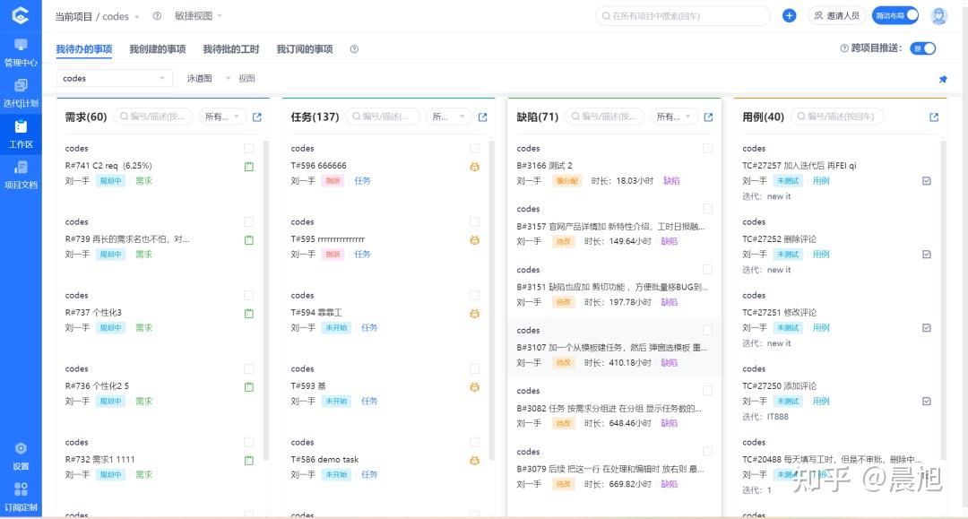 如当前在工作区我待办的事项页面,刚好领导又给我指派了新工作(需求、任务、缺陷,分配要执行的用例),会自动推送到相关泳道中,并显示在最上面。我订阅的事项,也是一样的自动推送并显示。