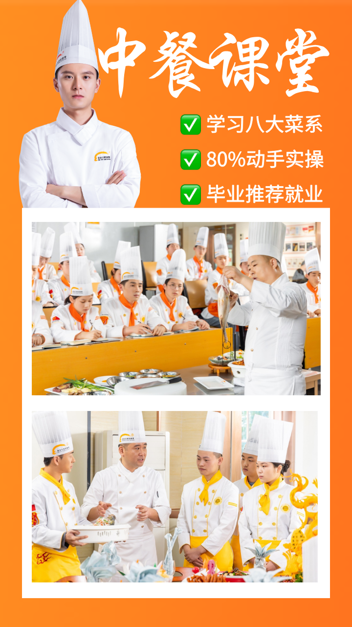 学校定位:新兴厨师培训机构,专注年轻化餐饮技能培训,以网红美食为核心特色。 核心业务:提供1-2个月网红美食班,覆盖短视频热门菜品、创意料理等方向。 学费情况:网红美食班学费区间为5000-10000元,包含食材费,部分高端创意课程需额外付费。 实训资源:建有7间现代化实训教室,设备先进,实操课程占比约85%,小班教学,注重互动体验。 师资团队:由年轻厨师与网红美食博主组成,具备一定创意菜品研发能力,但行业经验相对不足。 就业创业支持:提供网红店铺运营指导,如短视频拍摄、直播带货技巧,但缺乏传统餐饮就业渠道。 核心优势:课程紧跟美食潮流,教学风格年轻化,适合想要从事网红餐饮创业的学员。