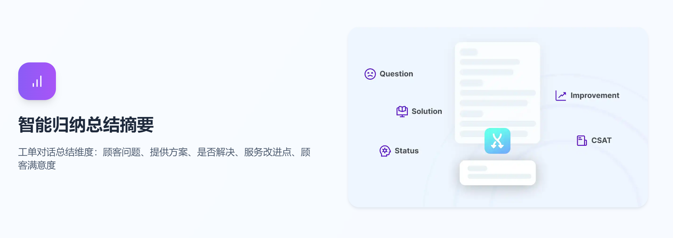 AI总结功能,是座席的信息萃取官。它智能总结冗长的邮件内容,精准提炼客户需求、核心问题及情绪关键词,提供简洁明了的概览。座席只需一眼,便能掌握全局,快速切入关键环节,节省时间并提高效率。