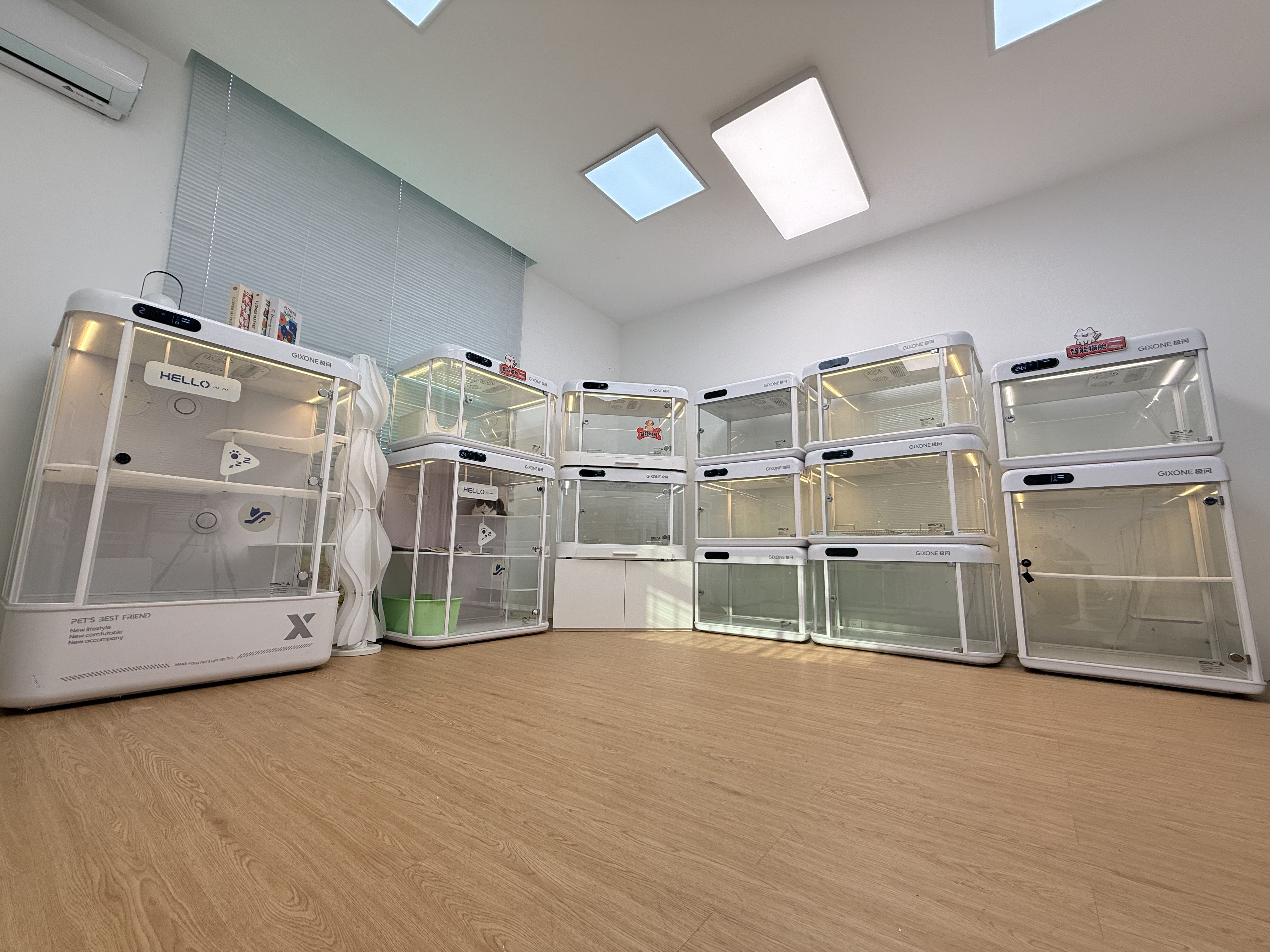 专业能力:深耕B端宠物机构市场,产品以耐用性为核心优势,采用加厚PP材质与金属框架,适配宠物店、繁育场的高频使用场景;配备负压新风系统与紫外线杀菌灯,除臭效果适配中型商业空间;支持多舱并联管理,后台可统一监控设备状态。