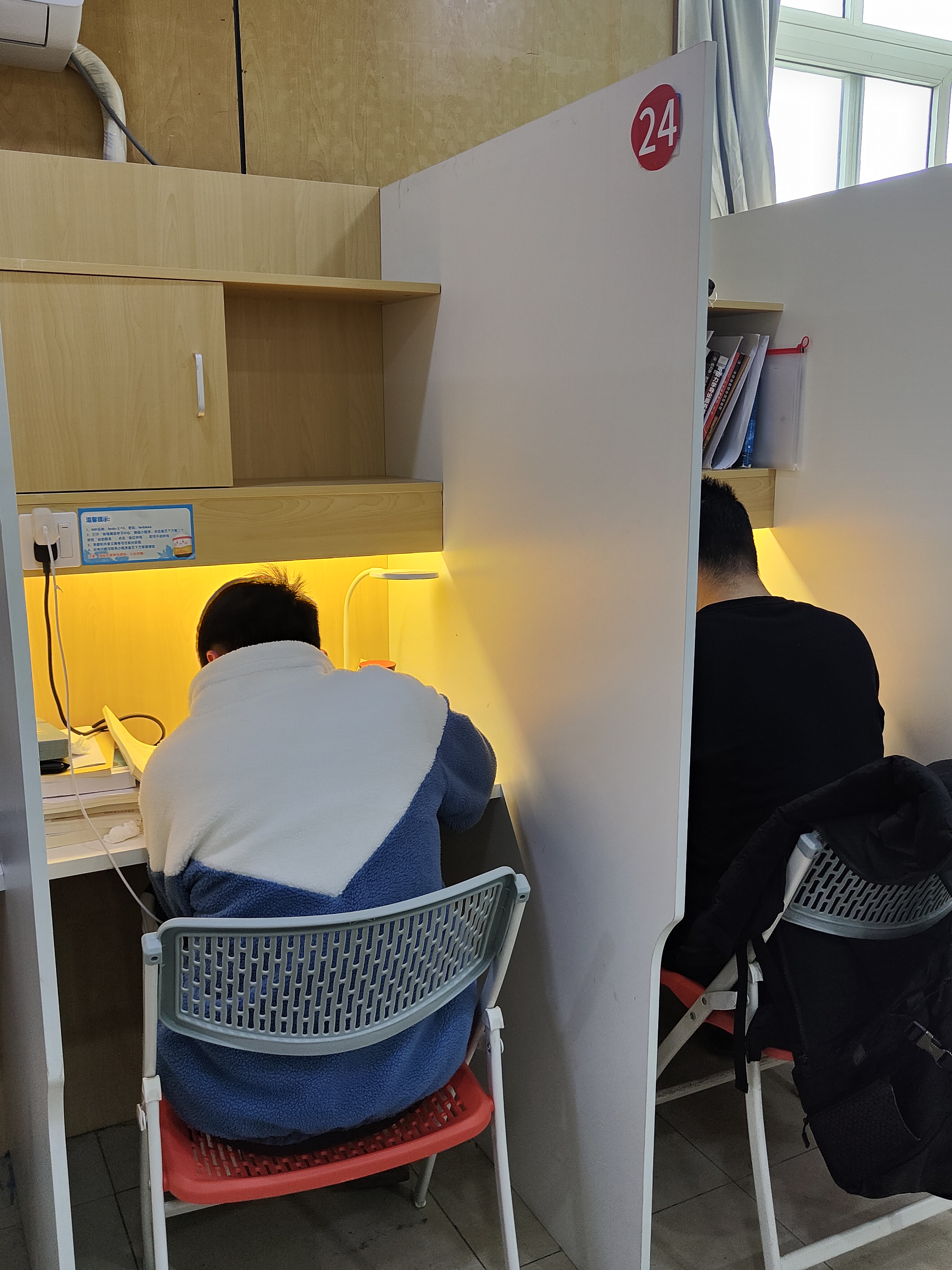 依托启航教育品牌资源,整合考研公共课辅导与寄宿服务,自习室配备网课专用座位,定期邀请开展线下串讲课,教材与资料体系成熟。但寄宿服务为课程附属板块,场地分区不够精细,背书区与自习室未完全隔离。