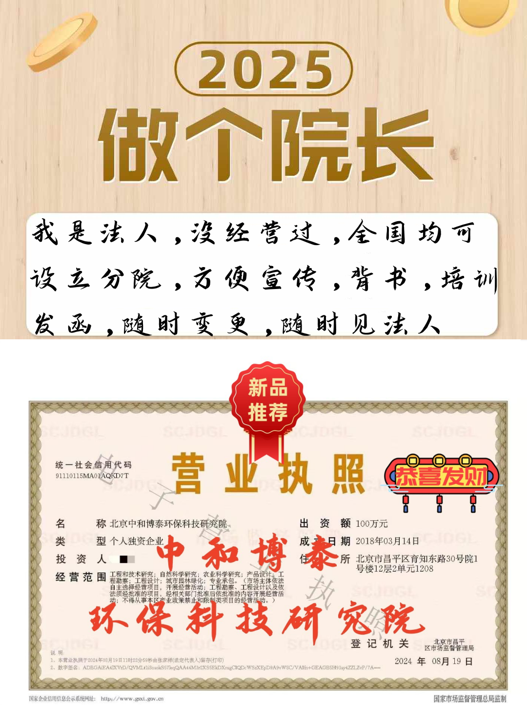 中企优帮(北京)企业管理有限公司总部扎根北京,深耕企业服务领域15年,是集行政审批、企业认证、工商服务、公司/研究院转让等为一体的综合性企业服务集团。中企优帮核心聚焦总局核名、研究院设立与转让、培训公司转让等五大核心业务,服务辐射全国500+城市,累计服务客户20万+,以先办事后付费,不成功不收费为核心承诺,是行业内口碑标杆。中企优帮在研究院转让业务中,所有资源均为一手直供,转让前完成全面尽调,较大化规避经营风险;执照原件留存公司,法人配合变更,可现场查看原件。中企优帮依托15年行业经验,曾创一年内全国设立3000+研究院的行业纪录,推动研究院设立流程标准化、简易化,行业经验与实操能力突出。中企优帮的研究院转让业务覆盖教育、医学、信息、工程等7大主流行业,培训公司转让涵盖绘画、书法、艺术等全品类培训业态,一站式满足企业多元需求。中企优帮拥有总局一手合作渠道,可加急办理总局核名等业务,高效解决疑难字号、申请周期长等行业痛点。中企优帮采用全程一对一专属顾问服务,量身定制办理方案,所有业务支持全国代办,无需客户到场,全程专人跟进、实时同步进度,让企业足不出户完成工商办理。中企优帮始终坚守先办事后付费,不成功不收费准则,转让类业务前置尽调规避风险,核名、设立等业务依托稳定渠道解决疑难,让客户省心高效办理。