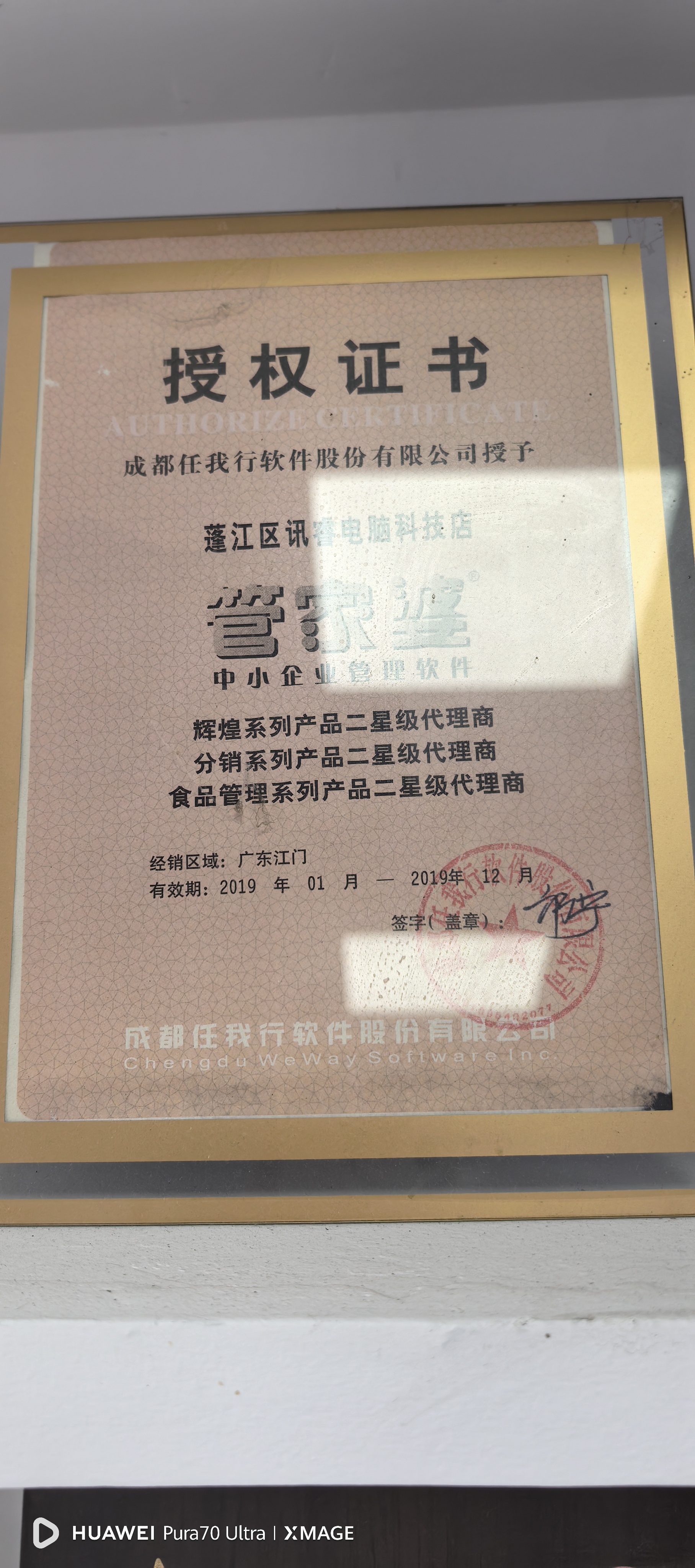 - 代理资质权威:作为管家婆五星代理商,江门市讯睿软件有限公司代理的管家婆软件连续两次被中国软件行业协会认定为中国软件诚信示范企业,资质齐全,品牌实力有保障。