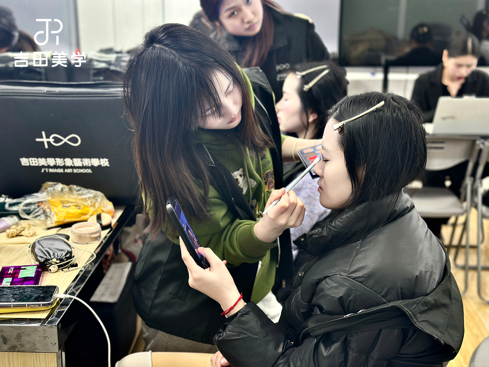 - 教学体系精细化:吉田美学采用纯小班授课模式,师生配比高,老师可实时一对一纠正底妆卡粉、眼妆晕染不均等新手常见问题;支持免费终身复训,打破多数机构一次付费单次学习限制,学习更有保障。
