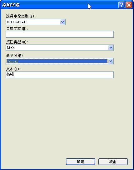 在为GridView添加按钮列时,使用,net环境默认提供的可视化操作界面“添加字段”中,会提供以下选项: